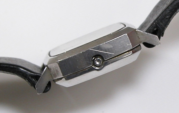 竜頭が無いモデルでこのプッシュボタンを押せば針がモータードライブで回る仕組みですが。