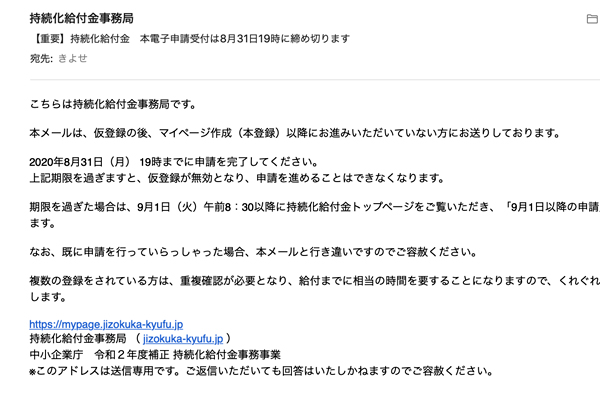 8/29の朝にメールBOXに入っておりました。「持続化給付金」からみ。