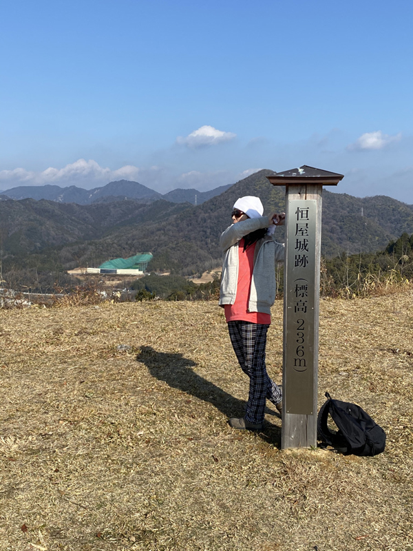 1/13日「恒屋城跡」に登ってみました。最近は山登りが多いですが健康の為、それと最近ではコロナ対策で免疫力アップの為です。山頂をティーグランドに見立ててスイングする嫁。というのも。