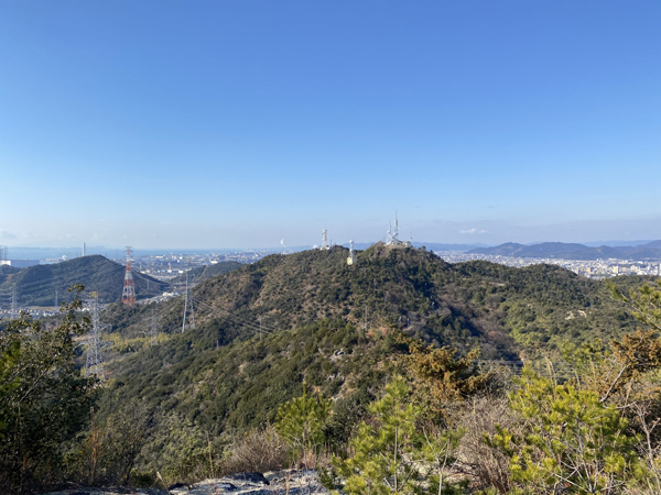 小富士山から白浜の方を望みます。目の前に通っているのは「姫路バイパス」。ここから一旦は谷を降りまして。