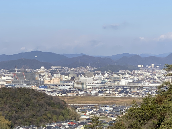 途中、家の方面を望みます。周辺の山から家を探すのにお城は良い目印になります。