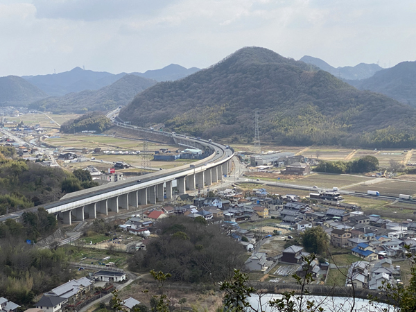 ローカルな話題で申し訳ないですが、山陽自動車道と国道372号線が交差する所です。高速で言えば姫路東ICを東側に過ぎた辺りです。この山は奥の山と連なっていると思っておりましたが。