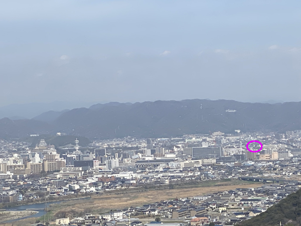 山頂からの眺めですが「太陽公園」が見えます。