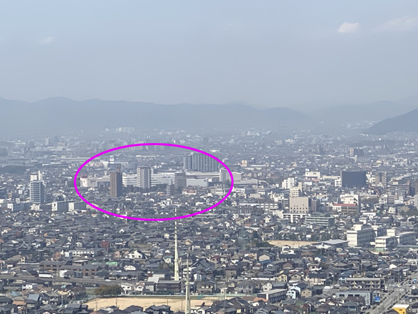 南西を望めば飾磨のリバーシティー(AEON)が見えます。