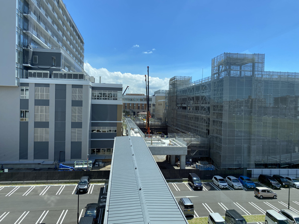 東を望めば新しい病院も着々と建設中。