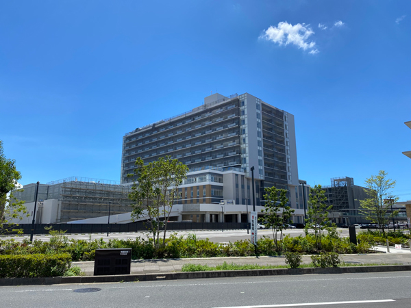 病院は来年の完成ですから急ピッチで進んでおります。アクリエ姫路とお隣同士に位置し姫路駅から歩いて10分くらい。同じ神屋町ですから家までが5分の立地です。