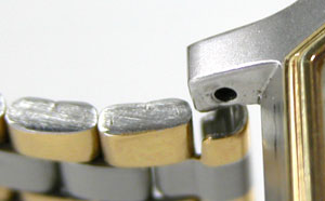 腕時計のラグ部に合わせてみると幅はピッタシ!しかしバネ棒を入れると、やはり。
