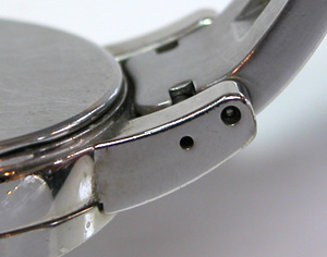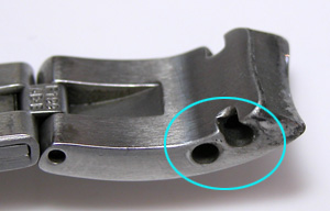 ラグ足が長い状況とステンレス無垢バンドを挟み込んおり。