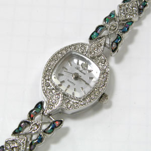 ベルトの七宝が綺麗な腕時計で、ブレスレットバックルの腕時計に見えます。