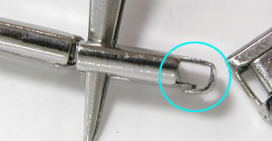 さらに拡大。これで分かりますね、カラビナの様に押し込んではめるのみ。
