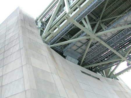 入口の玄関ロービーでは、大橋の工事の様子が放映されていました。