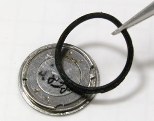 腕時計の裏蓋でも、電池専用蓋が外せた所で。先ずはパッキンの交換です。