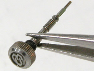 竜頭にもシリコンを塗ります。 竜頭の”クォーツ・マーク”が懐かしいですね。