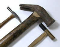 もし大工用のハンマーで作業する場合は、大きなヘッド(金属部分)を持って作業しましょう。柄を持って振り下ろすと腕時計用工具などは一発で潰れます。