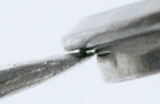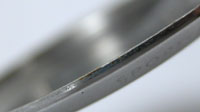 これが”はめ込みタイプ”の開け口です。これ写真ですが実寸よりも大きく加工している訳ですが肉眼では、かろうじて分かる程度です。先ずは、この開け口の幅で使うこじ開けを決めます。慣れない方は茶色のこじ開け1本にした方が無難ですが。(多少の傷は残るかもしれませんが、裏蓋を変形させたり怪我をするのと、どちらをとるか考えましょう。)