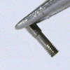 この様に小さなネジを摘みます。次にネジを落とさないように摘んだまま360度回転させます。これが事が出来たら一人前ですか。(目安ですが)もちろん片手でですよ。片手で360度回転させると言うことはピンセットを持った指を持ち直します。持ち直した時にピンセット先端に掛かる力が変わるとネジは落ちます。ピンセットでネジを掴んだ状態で1本の棒の様に扱う訳です。360度回してから、また360度逆回転出来たら成功!