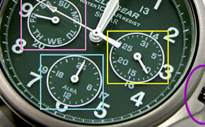 この文字盤はクロノグラフに見えますが違います。文字盤の針はカレンダーです。こういうタイプを「多軸カレンダー」と呼びます。これも基本は前ページの解説と同じで。”カレンダー操作禁止時間帯”もありますし、カレン...