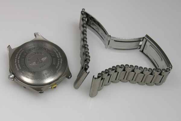 チタン板巻きバンドに三つ折れバックル。