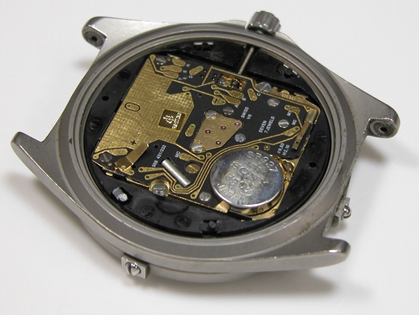 ムーブメント拡大。電池に湿気の痕跡がありますが。