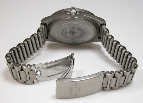チタン板巻きバンドに三つ折れバックル。