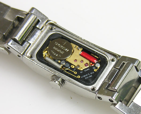 綺麗になったケースにムーブメントを戻して電池格納部をチェックします。