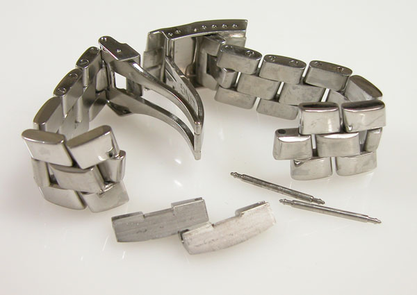 ステンレス無垢バンドに三つ折れダブルロック。
