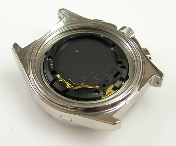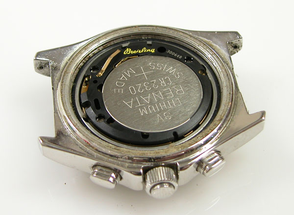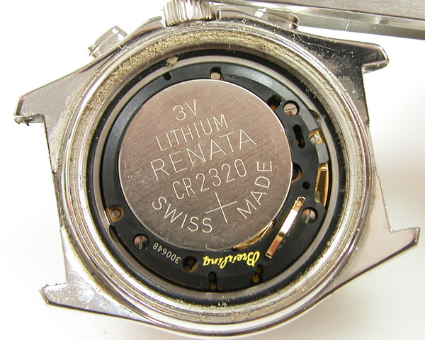 裏蓋を開けると電池がムーブメントを覆っております。