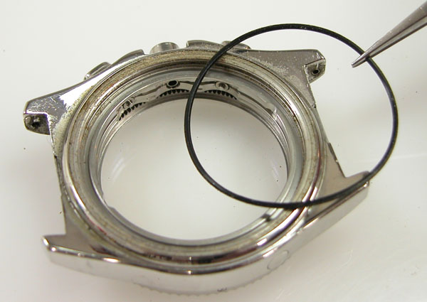 外したパーツを戻していき電池を入れてパッキンにシリコン塗布をしてケースに戻します。
