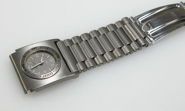 チタン板巻きバンドに三つ折れバックル。