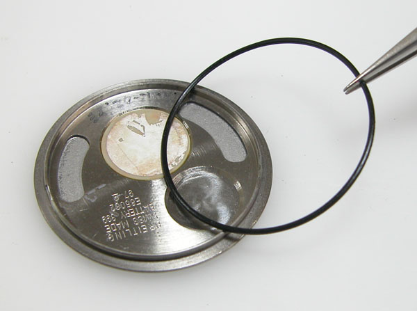 パッキンにシリコン塗布をして裏蓋に戻し。