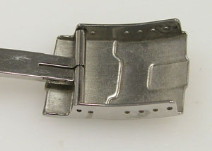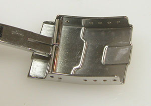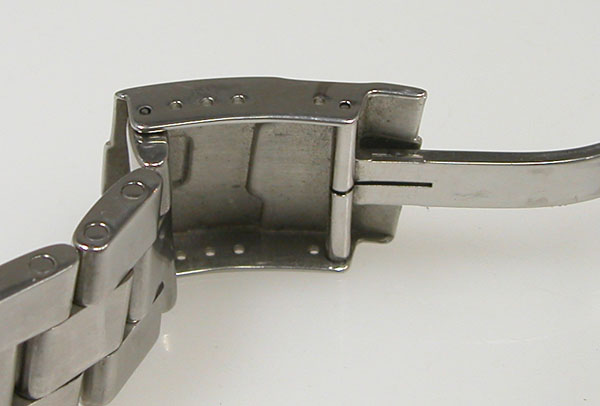 ステンレス無垢バンドに三つ折れダブルロック。