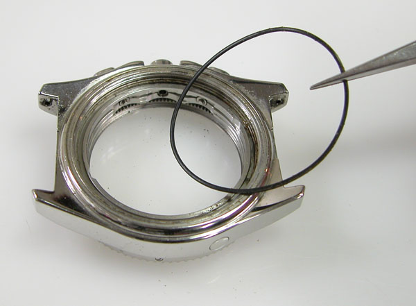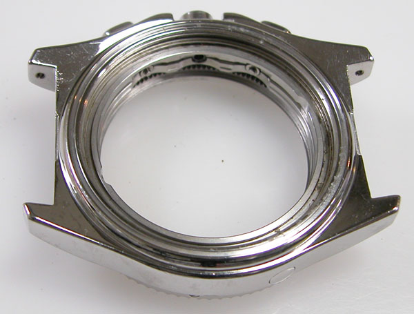 目盛リングがあるので、そのまま洗浄は出来ませんから裏蓋を閉めてまるごと洗浄して浸水が無いかチェックします。