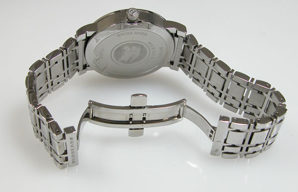 ステンレス無垢バンドに両開きバックル。バックルにさえ汚れは無く未使用と言えるでしょう。