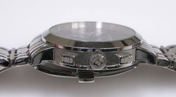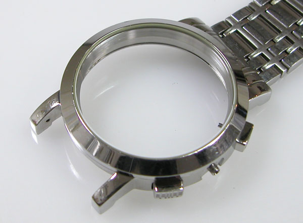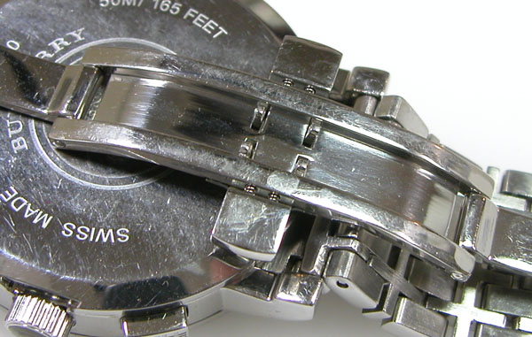 ステンレス無垢バンドに両開きバックル。