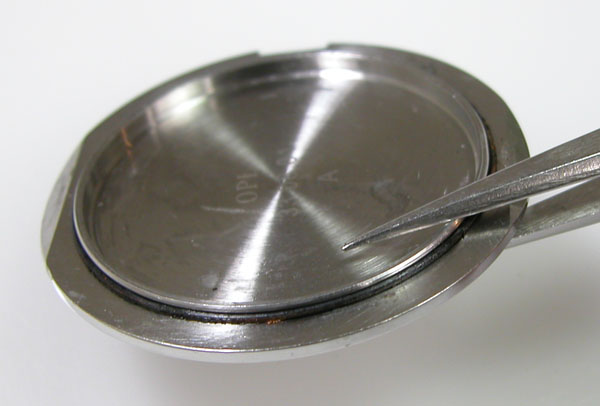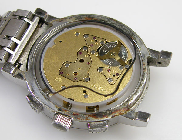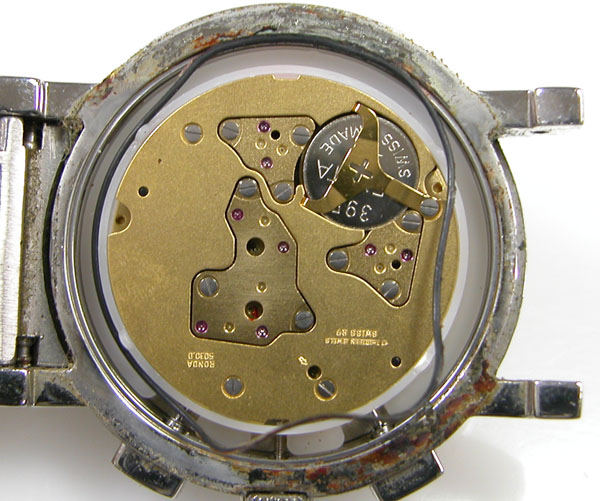 綺麗になったケースにムーブメントを戻して電池格納部をチェックします。