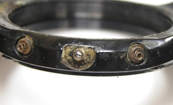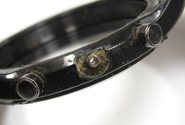 プッシュボタンの根本をみると錆で固着しております。