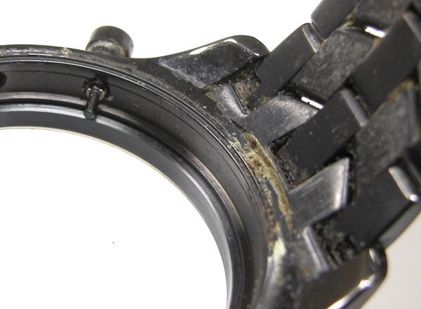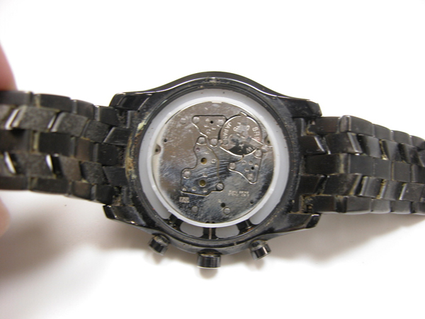 裏蓋は”はめ込みタイプ”で裏蓋記載。裏蓋もラグ部も汚れがビッシリ。