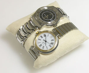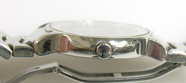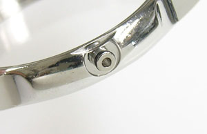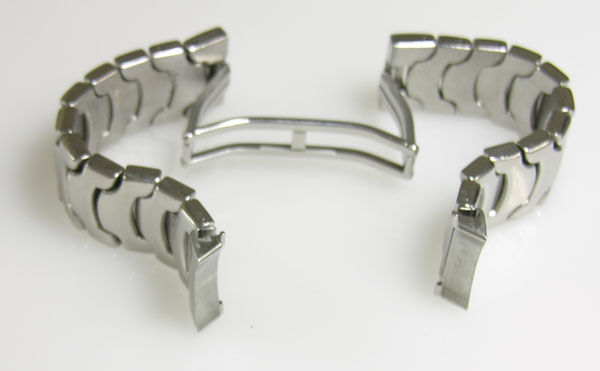 ステンレス無垢バンドに両開きバックル。