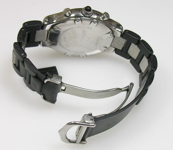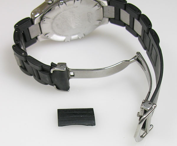 切断寸前ですから交換用のブレスが無い限り、電池交換で動いても腕に付けられない時計です。取付部の特殊性から既製品への交換も不可です。よって「交換用ウレタン・バンドをお持ちか?」分からないと先へ進めません。