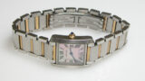 2023.3.5お預かりのCartier Santos BARBE 電池交換です。ガラスにヒビがある様に見えますが文字盤の塗装にヒビが入っております。内部に湿気が入り日光に当たるとよくこうなります。