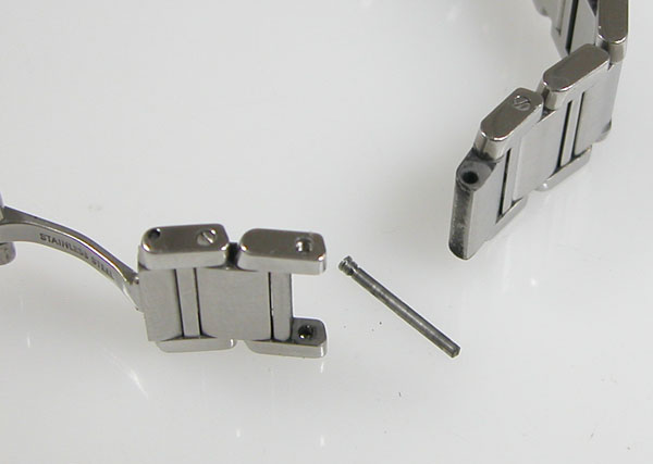 ステンレス無垢バンドに両開きバックル。