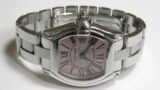 ピンク色の、白蝶貝文字盤。