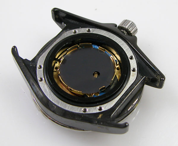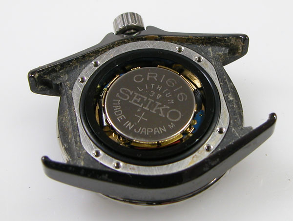 裏蓋を開けると電池がムーブメントを覆っております。