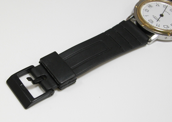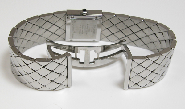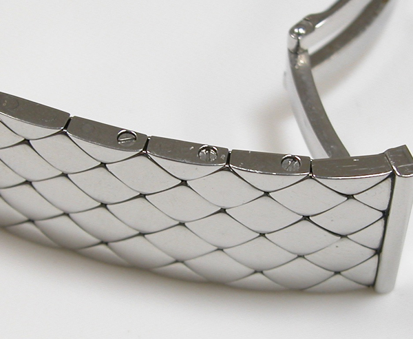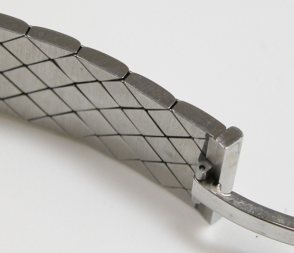 ステンレス無垢バンドに両開きバックル。