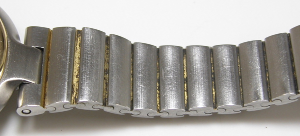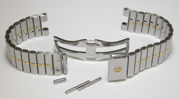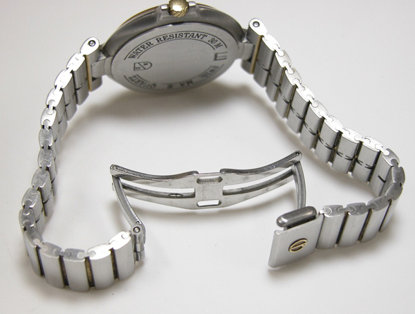 ステンレス無垢バンドに両開きバックル。