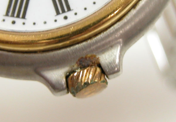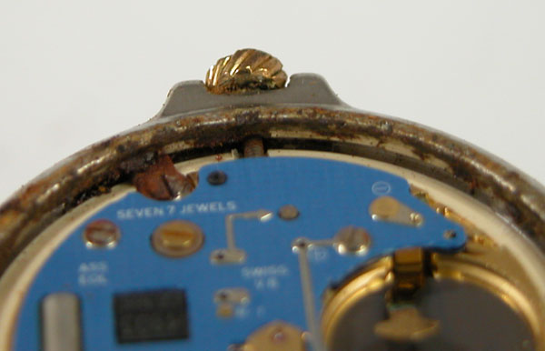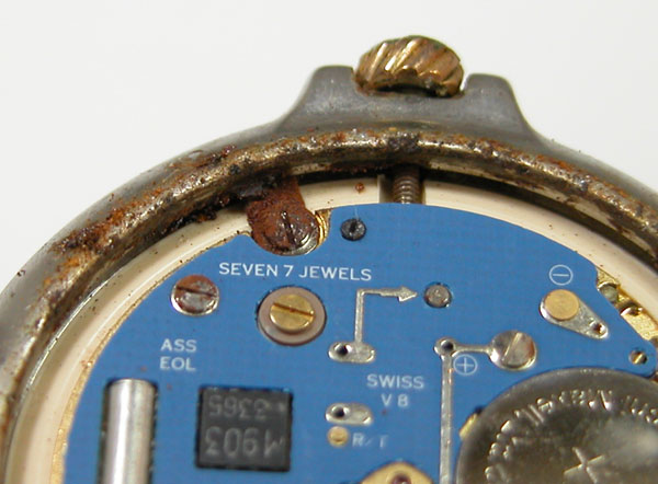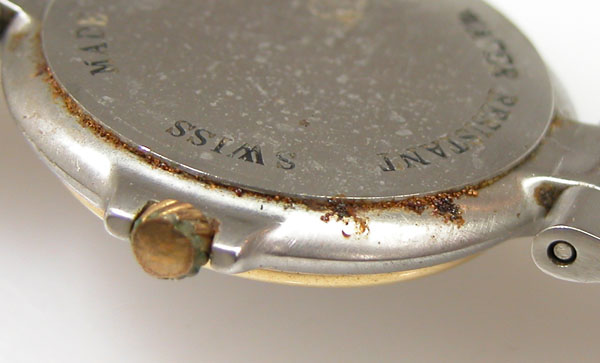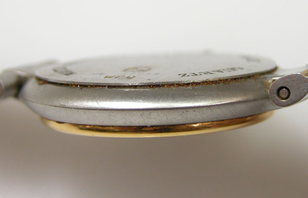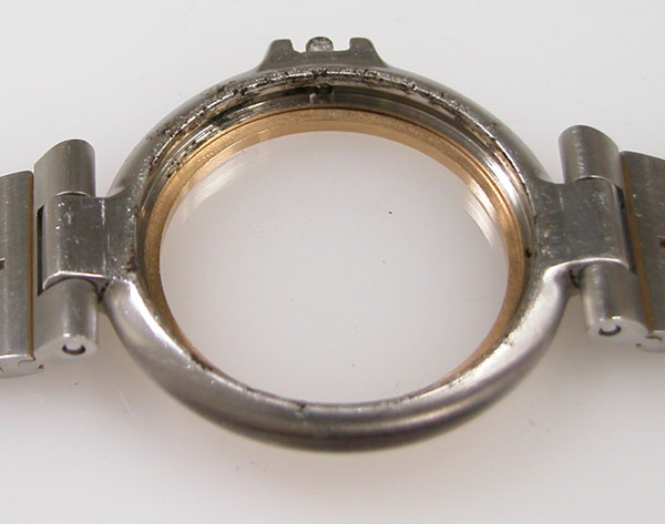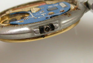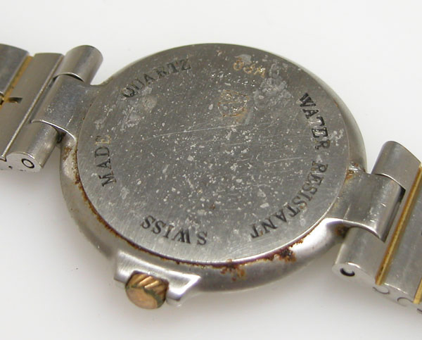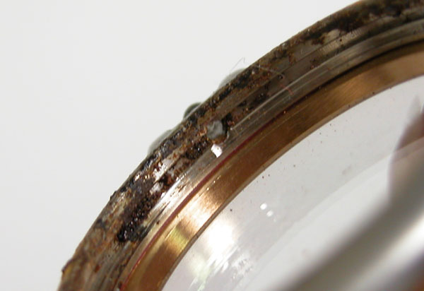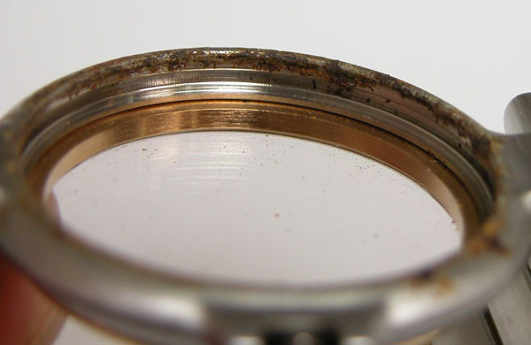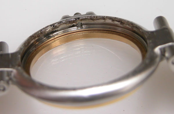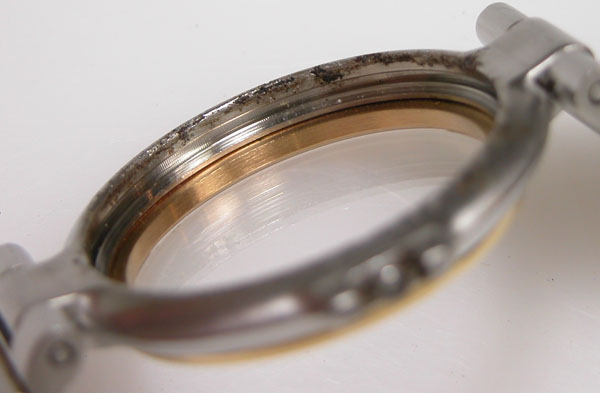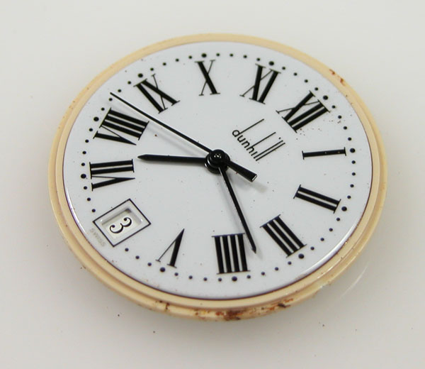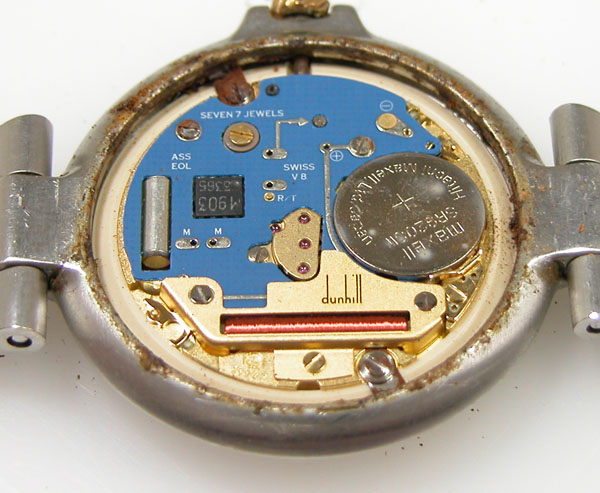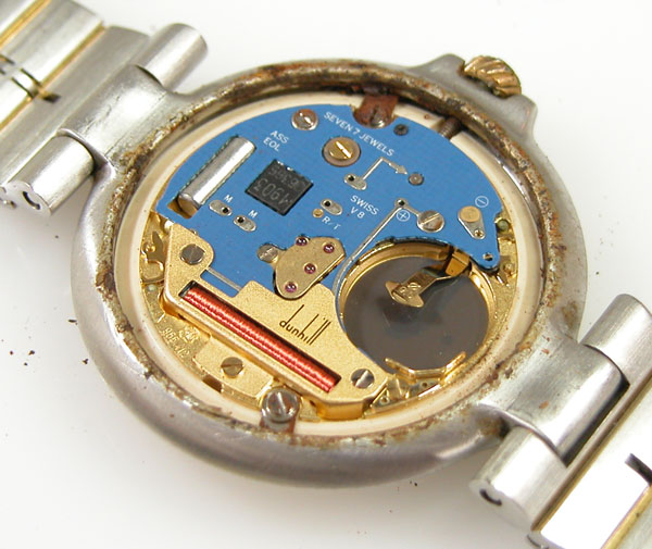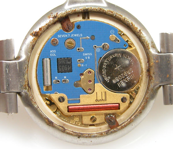ダンヒルのこのモデルは裏蓋の密閉度が低いのか開けると周囲から汗が染みこんで錆びているパターンが多いです。