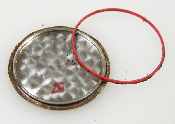 裏蓋の裏側もチェックして。パッキンが効いていた事がよくわかります。