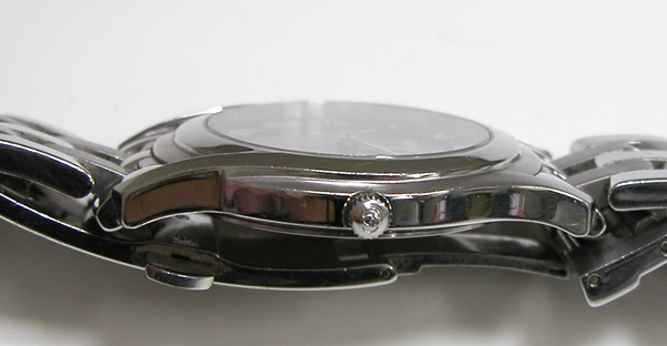 ステンレス無垢バンドに両開きバックル。