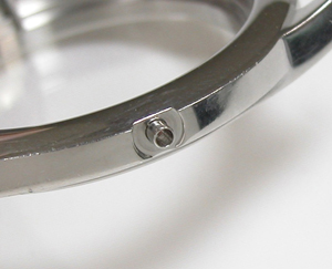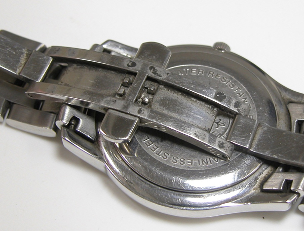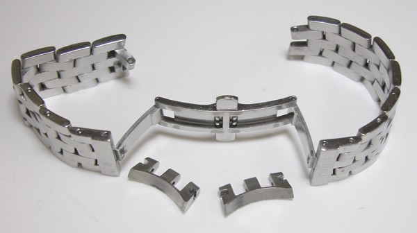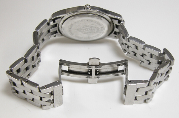 ステンレス無垢バンドに両開きバックル。