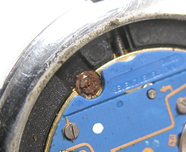 ケースの内側もチェックします。バネ棒が片方、錆で外れません。